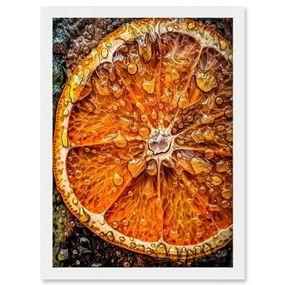 Artery8 Orange Slice with Juice Droplets Macro Painting Artwork Framed A3 Wall Art Print