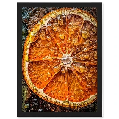 Artery8 Orange Slice with Juice Droplets Macro Painting Artwork Framed Wall Art Print A4