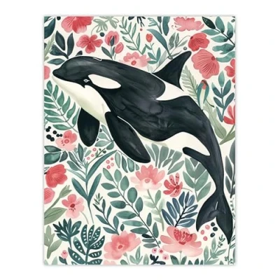 Artery8 Orca Killer Whale Flower Sea Watercolour Floral Living Room Extra Large XL Wall Art Poster Print