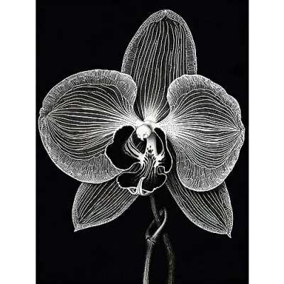 Artery8 Orchid Flower Bloom Black and White Blind Contour Extra Large XL Wall Art Poster Print
