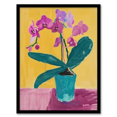 Artery8 Orchid Flower Pot Orange Lilac Green Painting Living Room Artwork Framed Wall Art Print A4
