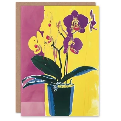 Artery8 Orchid Flower Pot Purple Yellow Painting Greeting Birthday Card Him Her All Blank