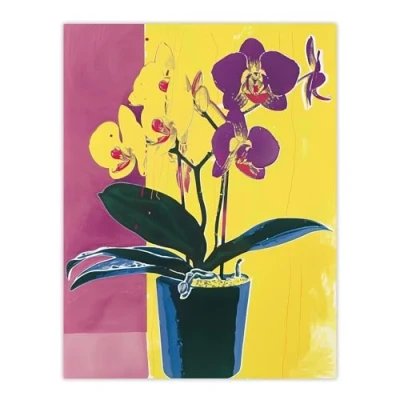 Artery8 Orchid Flower Pot Purple Yellow Painting Living Room Extra Large XL Wall Art Poster Print