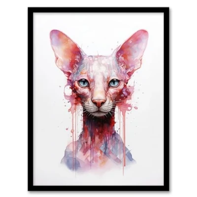 Artery8 Oriental Shorthair Cat Lovers Gift Watercolour Pet Portrait Painting Artwork Framed Wall Art Print A4
