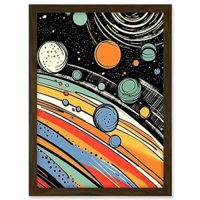 Artery8 Outer Space Comic Book Style Pastel Colour Milky Way Planets Rings Moons Sun Boys Room Artwork Framed A3 Wall Art Print