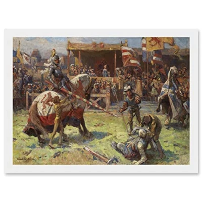 Artery8 Painting Landscape Medieval Ajdukiewicz Knights Jousting Artwork Framed Wall Art Print A4