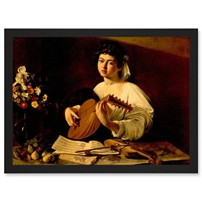 Artery8 Painting Portrait Study Caravaggio Lute Player Artwork Framed Wall Art Print A4