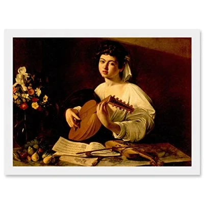 Artery8 Painting Portrait Study Caravaggio Lute Player Artwork Framed Wall Art Print A4