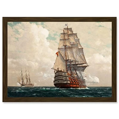 Artery8 Painting Seascape Naval Diemer Ship At Sea Men O War Passing Artwork Framed Wall Art Print A4