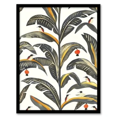 Artery8 Palm Leaves Birds Tropical Pattern Botanical Living Room Artwork Framed Wall Art Print A4