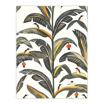Artery8 Palm Leaves Birds Tropical Pattern Botanical Living Room Extra Large XL Wall Art Poster Print