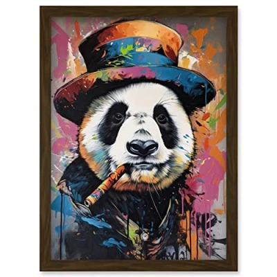 Artery8 Panda Bear with a Suit Low Top Hat and Cigar Artwork Framed Wall Art Print A4