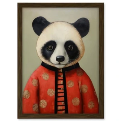 Artery8 Panda Cub in Chinese Uniform Fun Kids Bedroom Artwork Framed A3 Wall Art Print