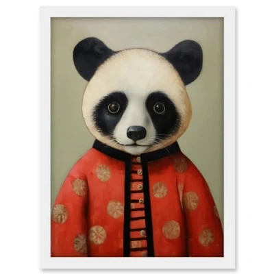Artery8 Panda Cub in Chinese Uniform Fun Kids Bedroom Artwork Framed A3 Wall Art Print