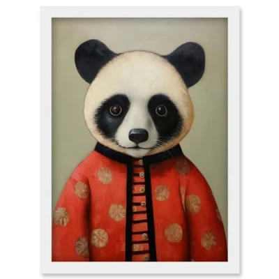 Artery8 Panda Cub in Chinese Uniform Fun Kids Bedroom Artwork Framed Wall Art Print A4