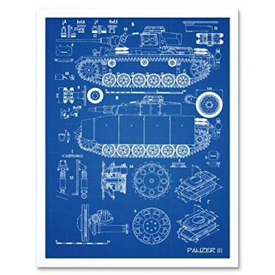 Artery8 Panzer III 3 German Medium Tank Blueprint Plan Art Print Framed Poster Wall Decor 12x16 inch