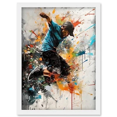 Artery8 Parkour Jump Urban Sport Paint Splat Action Shot Artwork Framed Wall Art Print A4