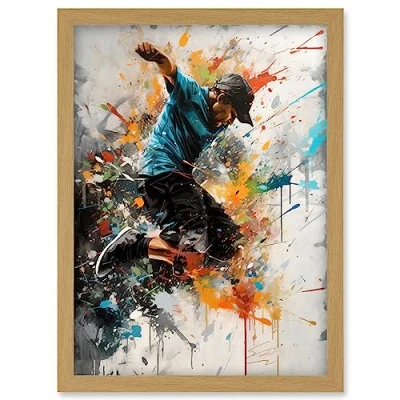 Artery8 Parkour Jump Urban Sport Paint Splat Action Shot Artwork Framed Wall Art Print A4
