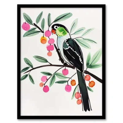 Artery8 Parrot Bird Pink Green Fruit Tree Branch Bright Living Room Artwork Framed Wall Art Print A4