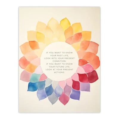 Artery8 Past Present Future Buddhist Mindfulness Quote Watercolour Mandala Buddha Meditation Enlightenment Vihara Extra Large XL Wall Art Poster Print