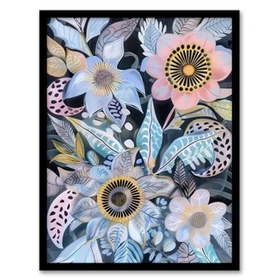 Artery8 Pastel Boho Flower Garden Bouquet Folk Art Living Room Artwork Framed Wall Print A4