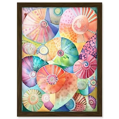 Artery8 Pastel Colour Seashells Folk Art Artwork Framed A3 Wall Print