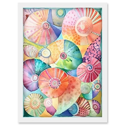 Artery8 Pastel Colour Seashells Folk Art Artwork Framed Wall Print A4