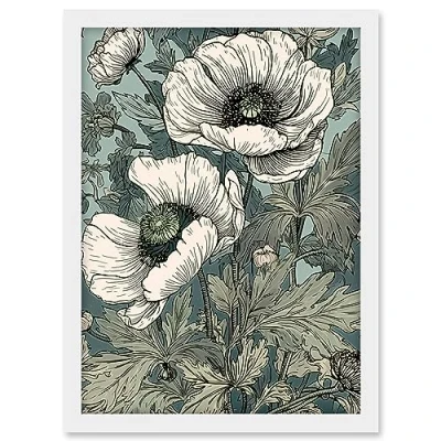 Artery8 Pastel Colour White Anemone Flower Bloom Field Artwork Framed A3 Wall Art Print