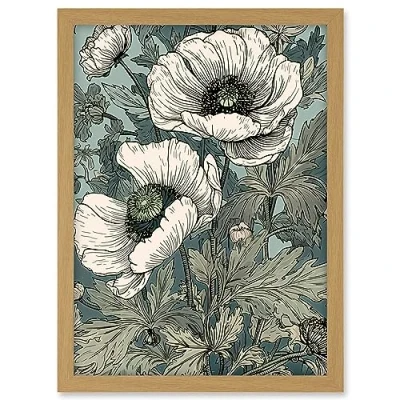 Artery8 Pastel Colour White Anemone Flower Bloom Field Artwork Framed A3 Wall Art Print