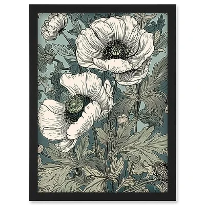 Artery8 Pastel Colour White Anemone Flower Bloom Field Artwork Framed Wall Art Print A4