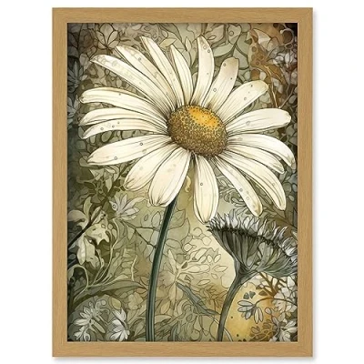 Artery8 Pastel Watercolour Daisy Flower Bloom Illustration Artwork Framed A3 Wall Art Print