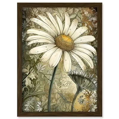 Artery8 Pastel Watercolour Daisy Flower Bloom Illustration Artwork Framed A3 Wall Art Print