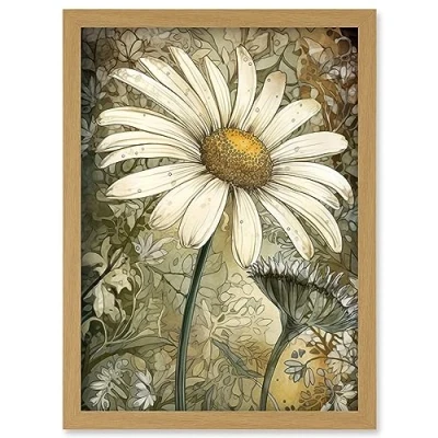 Artery8 Pastel Watercolour Daisy Flower Bloom Illustration Artwork Framed Wall Art Print A4