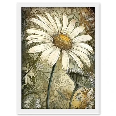 Artery8 Pastel Watercolour Daisy Flower Bloom Illustration Artwork Framed Wall Art Print A4