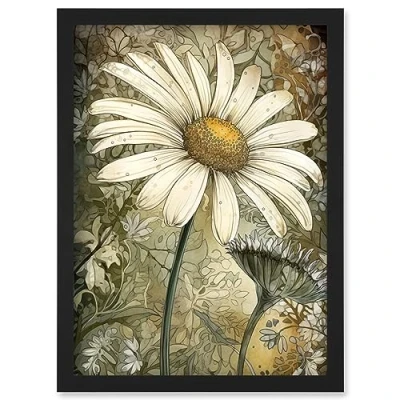 Artery8 Pastel Watercolour Daisy Flower Bloom Illustration Artwork Framed Wall Art Print A4