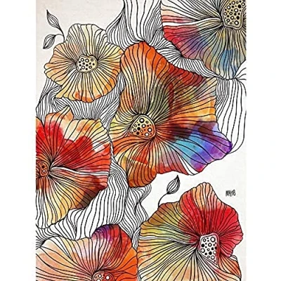 Artery8 Patterned Poppy Flower Colourful Painting Art Print Canvas Premium Wall Decor Poster Mural