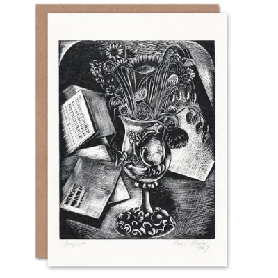 Artery8 Paul Nash Art Card Flower Bouquet Black White Still Life