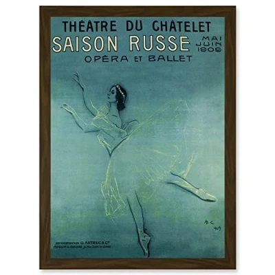 Artery8 Pavlova Ballet Russian Paris France Vintage Blue Advert A4 Artwork Framed Wall Art Print