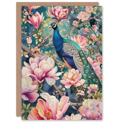 Artery8 Peacock Bird Cherry Blossom Flower Tree Design Greeting Birthday Card Him Her All Blank