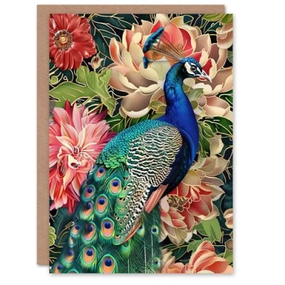 Artery8 Peacock Bird with Flower Pattern Stylised Design Greeting Birthday Card Him Her All Blank