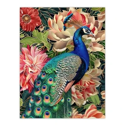 Artery8 Peacock Bird with Flower Pattern Stylised Design Living Room Extra Large XL Wall Art Poster Print