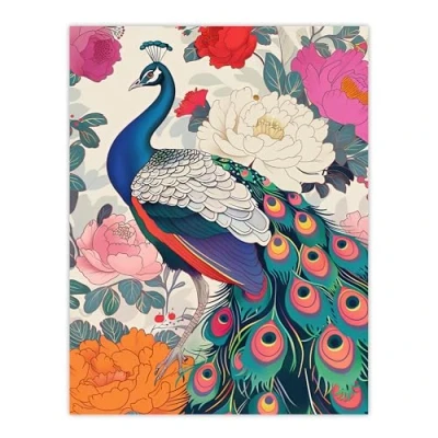 Artery8 Peacock Bird with Peony Flower Pattern Design Living Room Extra Large XL Wall Art Poster Print