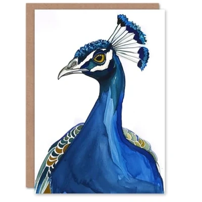 Artery8 Peacock Peafowl Navy Blue Bird Head Watercolour For Her Woman Birthday Card