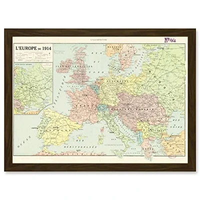 Artery8 Peltier 1914 Political Map Europe French Artwork Framed Wall Art Print A4