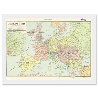 Artery8 Peltier 1914 Political Map Europe French Artwork Framed Wall Art Print A4