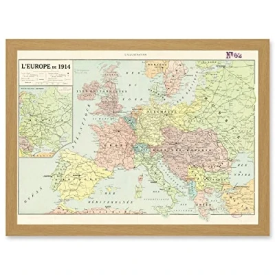 Artery8 Peltier 1914 Political Map Europe French Artwork Framed Wall Art Print A4
