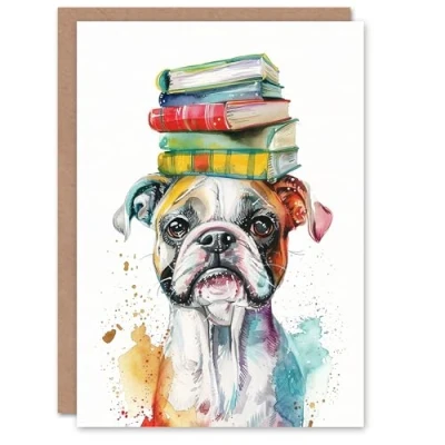 Artery8 Personalised Birthday Card Boxer Dog Pet Portrait Book Stack For Son Daughter Girl Boy Kids Happy