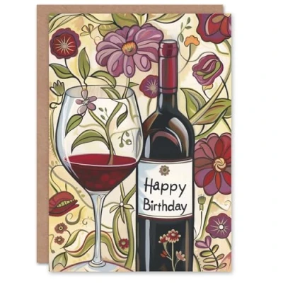 Artery8 Personalised Birthday Card Red Wine Bottle and Glass Floral Design For Him Her Man Woman Greeting