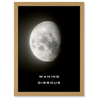 Artery8 Phases of the Moon Astronomy Waning Gibbous Lunar Space Poster Artwork Framed Wall Art Print A4