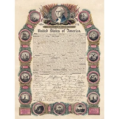 Artery8 Phelps 1845 USA Declaration Independence 1776 Pictorial Large Wall Art Poster Print Thick Paper 18X24 Inch